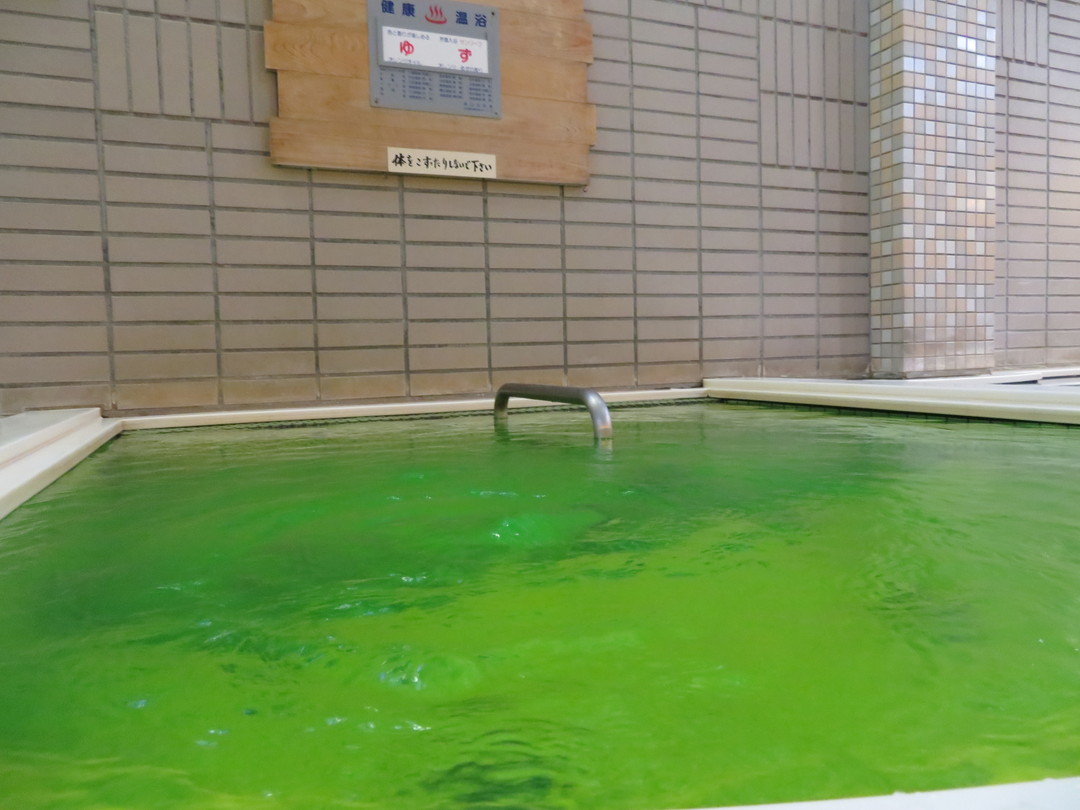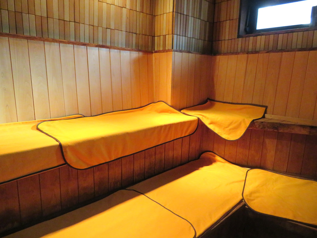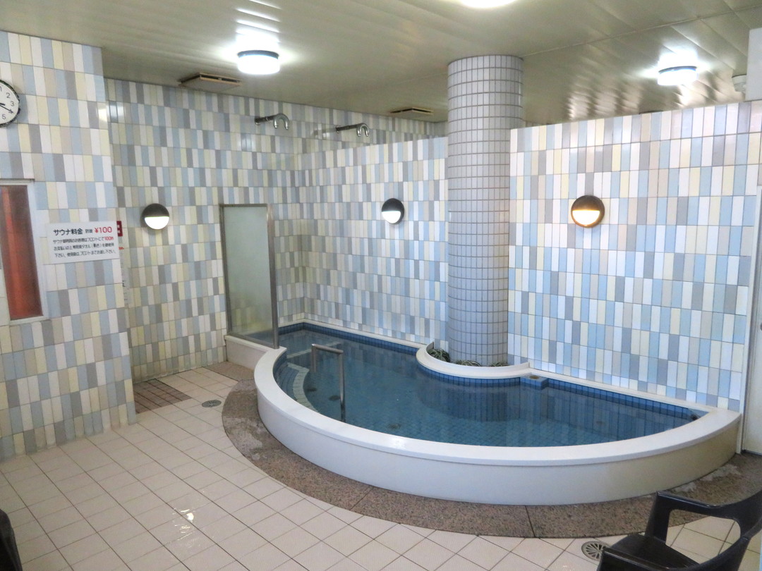 白とブルーの浴槽と、遠赤外線サウナと大きな水風呂をお楽しみください。